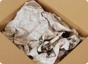 商品の隙間に新聞紙を敷き詰め、エアーキャップで蓋をし、さらに新聞紙を敷き詰めます。