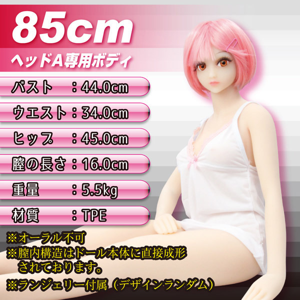 あなただけのオリジナルドールに♪瞳と髪の色を選べるユニークなリアルラブドール。●身長85cmのコンパクトなボディ●重さ5.5kgと軽量で移動も簡単●肉感的なエラストマー素材使用●B44・W34・H45とGOODバランス●人間の関節のように各所可動●髪は4種、瞳は3種から選択可能●髪…ロング黒・ロング赤・ショート金・ショートピンク●瞳…オレンジ・グリーン・ブルー●膣の奥行16cm(本体に成型済み)●お任せランジェリー一着付属●オーラルプレイはできません。髪型&髪色&目の色はお好みで!黄金バランスなスリーサイズにリアルな肌触りが興奮を誘う小柄ラブドール。首・肘・手首や股関節・膝・足首など全身が可動するので、様々な体位を楽めます。※大型商品の為、送料が別途必要になります※必ず画像でアイカラー3種(オレンジ・グリーン・ブルー)のなかから、ヘアースタイル4種(ロング/ブラック・ロング/レッド・ショート/ブロンド・ショート/ピンク)のなかから、それぞれのご希望を選び注文時の備考欄にご記入ください、※画像に記載の注意事項を必ず確認してください。 |
