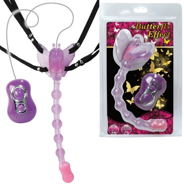 ガッシリ固定で3点同時責め!ベルト固定式のバタフライ型ローター「バタフライエフェクト」。●挿入したままベルトで固定可能●裏側の小突起でクリトリス責め●ペニス型の突起でヴァギナ責め●20cmのロングビーズでアナル責め●柔らかで丈夫なエラストマー素材●ヴァギナとアナル側に強力モーター●7種類の振動パターンを搭載。前も後ろも強力悶絶刺激!奥深くまで響く快感振動のベルト装着型ローター。バタフライのディルド部とアナルビーズ先端にダブルモーターを搭載!ゴム製ベルトでしっかりと固定できるので、装着したまま外出すれば屋外プレイもお楽しみ頂けます。 |