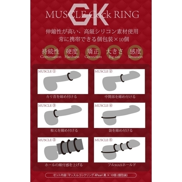 Cat Punch MUSCLE Cock RING (4Pearl) 10個入り