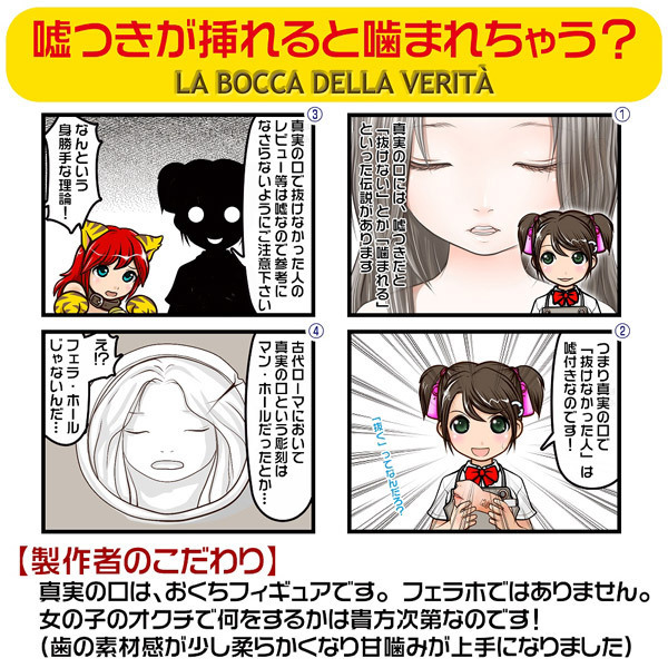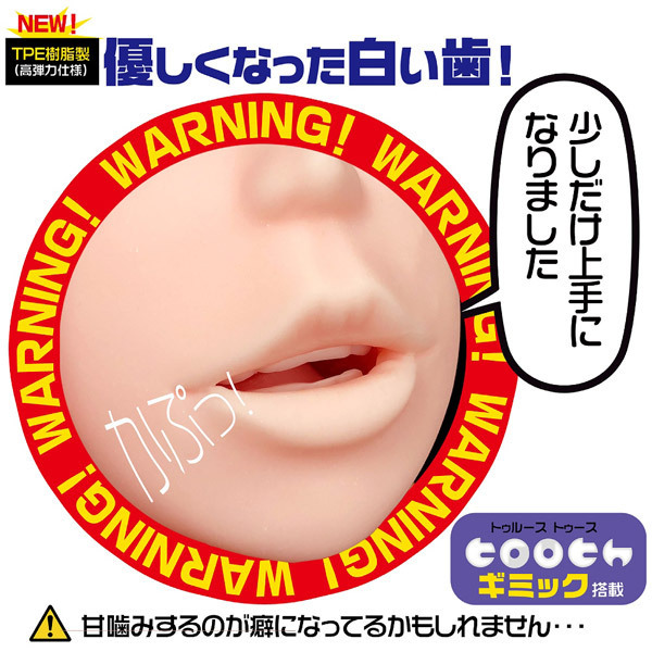 「真実の口 アマガミ」は、大ヒットフェラホ「真実の口」のソフトタイプです。オナホール(非貫通)の素材がソフトになったのに加え、歯部分の素材が柔らかい素材になり全体的にマイルドな刺激になっています♪挿入するとコリコリとした歯が亀頭を擦り、ねっとりとした舌が裏筋を嘗め回す!喉の奥まで行くと徐々に締め付けるイラマチオと出し入れする度に発生するバキューム吸引が精液を搾り取ります。超やわらかで丈夫な素材「めるてぃスキン」を使った表面の肌に、絡みつくような厚めの粘膜素材のお口と高弾力のTPE樹脂を使った真っ白い歯がリアルなオーラルプレイを再現!フェラに慣れていない女の子が、あどけなさの残る甘噛みをするようなフェラを存分にお楽しみください♪ |