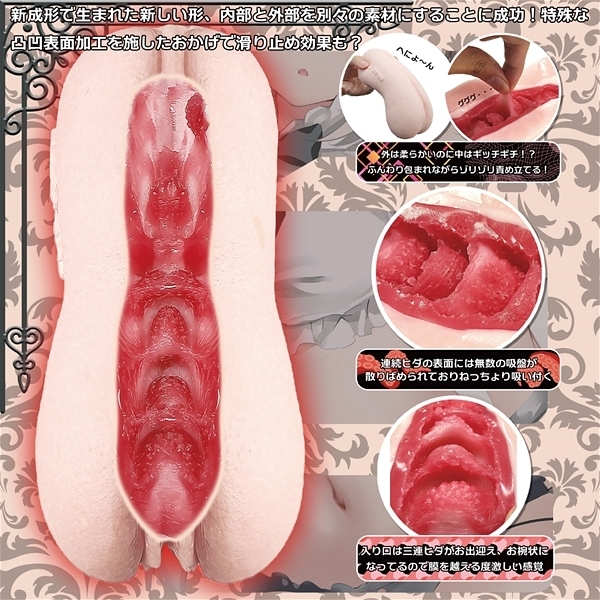 柔らかい素材を物理的に圧着して成形した非貫通オナホ「ソフトカバーなギッチギチ生膣マカロン」。内側と外側が別パーツで成形された「マカロン製法」なので充実した使用感が味わえます♪中はしっかりで外はフワフワのソフトカバータイプ!内部には粘膜層もあり3種の素材で構成されています。大きな三連返しヒダと細かなイボは上下を逆転させる事で全く異なる使用感が楽しめる!520gの大型ボディの素材には厚生労働省、食品衛生法第370号に準拠した「Magiceyes Skin」を採用しているので安心してご使用頂けます。ローション付属 |
