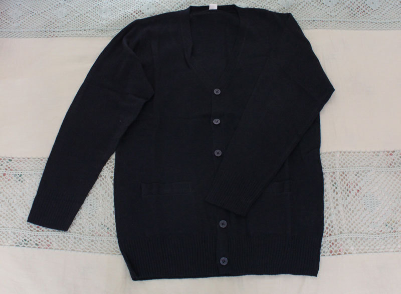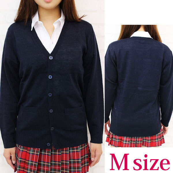 学生服コスプレにピッタリなネイビーカラーの「ニットカーディガン」。寒さも凌げて、オシャレ度もUP!普段の外出時にも活躍する、一石二鳥の便利アイテム!秋・冬に大活躍するカーディガンです。こちらはMサイズでございます。※水洗い不可、塩素系漂白剤による漂白不可、アイロンは中温で当て布使用、ドライクリーニング可、色落ちの可能性があります。※こちらの商品は在庫の状況によりお届けまでに4日〜7日程度かかる場合がございます。