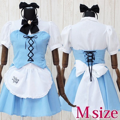 ブローチ付きの黒リボンがアクセント!メイド喫茶のオフィシャル制服に、アリス風の水色メイド服が登場しました。キュートなパフ袖に丸エプロンで可愛さ満点!ペチコートやリボンカチューシャなど、小物も充実した豪華7点セットのコスプレ衣装です。※水洗い不可、塩素系漂白剤による漂白不可、アイロンは中温で当て布使用、ドライクリーニング可、色落ちの可能性があります、ご注意ください。※ブラウス:前ボタン留め、立て襟、襟繰りレース付、胸部にビスチェ固定用のスナップ付、袖に水色くるみボタン付き※ビスチェ:横ファスナー、内側にシャツ固定用のスナップ付、背中の編み上げによりウェスト部のサイズ調整可※エプロン:ポケット付き、裾レース付、ミアグループロゴ刺繍入り※スカート:ウェストゴム仕様、全円スカート※ペチコート:裾レース付、ウェストゴム仕様、全円スカート※リボンカチューシャ:ブローチ付きリボンと共布※ブローチ付きリボン:安全ピン付、ブローチ付き※こちらの商品は在庫の状況によりお届けまでに4日〜7日程度かかる場合がございます。 |