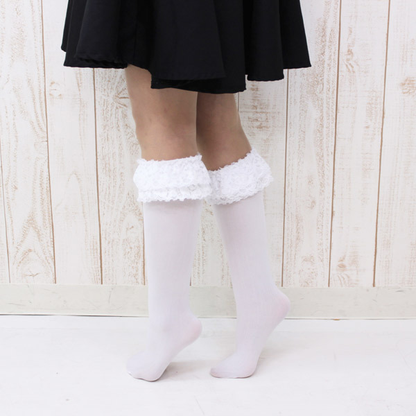 トップページ > コスプレ衣装 > 小道具(ニーソックス・猫耳) > リボン付きレースハイソックス 白