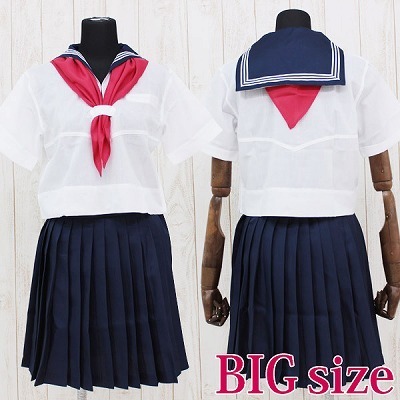 真っ赤なスカーフが抜群の存在感!定番のセーラー服カラーで仕上げた、学生服コスプレ(半袖)。●ホワイト×ネイビー×レッドの夏制服●スカーフ留め付きトップス●学生服定番のキュートなプリーツスカート●ぽっちゃり体型の方でも安心のBIGサイズ。小さめの襟がオシャレで可愛い!見た目、着心地ともに最高の制服コスチュームです。※水洗い不可、塩素系漂白剤による漂白不可、アイロンは中温で当て布使用、ドライクリーニング可、色落ちの可能性があります、ご注意ください。※こちらの商品は在庫の状況によりお届けまでに4日〜7日程度かかる場合がございます。 |