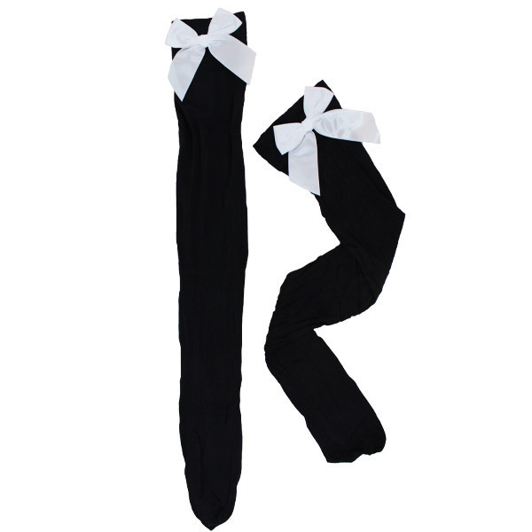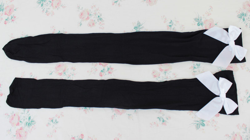 トップページ > コスプレ衣装 > 小道具(ニーソックス・猫耳) > リボン付きニーハイ 黒×白リボン