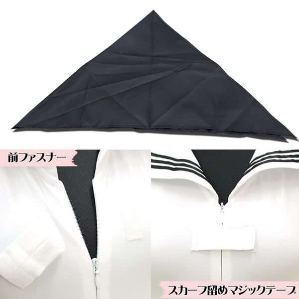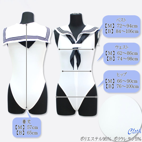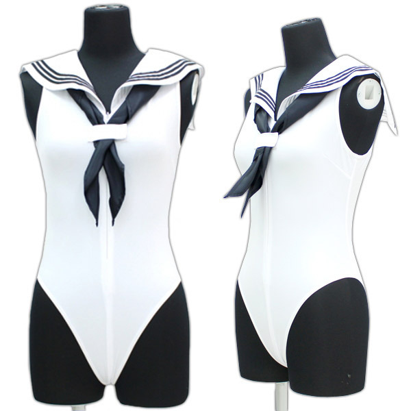 大人気のセーラー服とレオタードが合体!セーラー襟+スカーフ付きセーラーレオタード「セーラーノースリーブレオタード 白 M」。襟とスカーフの紺色をアクセントにした爽やかな白ベースのノースリーブレオタード。深めのハイレグ&ハーフバック、ぴちっとしたフィット感がクセになるセクシーコスチュームです。フロントファスナーは前開きの大胆仕様で着脱も簡単!スキッパー風にもセクシーな露出スタイルにもアレンジが可能です。※水洗い可、塩素系漂白剤による漂白不可、アイロン不可、ドライクリーニング不可、色落ちの可能性があります。 |