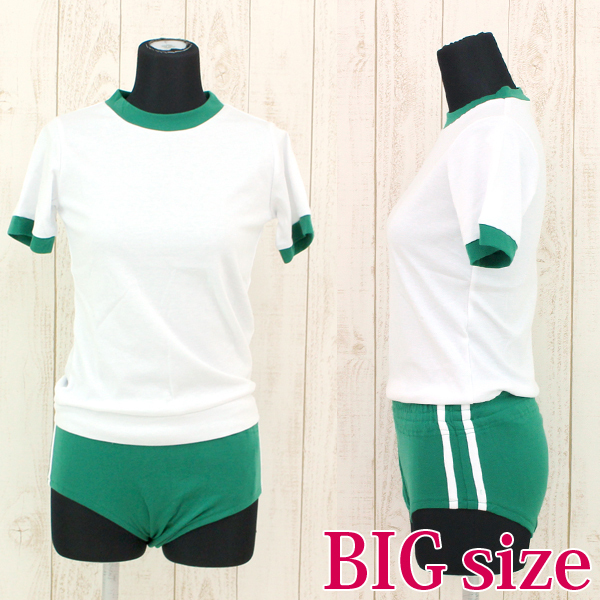 人気体の操着コスプレに新色グリーンの大きめサイズ、トップス&ブルマの上下セットが登場しました♪白とグリーンのカラーリングはどこか懐かしさを感じさせる可愛いデザイン!スベスベ素材は伸びの良い生地を使用で着心地良く、運動の際もしっかりのびのびと動けます♪緑ブルマのサイドには白い2本のライン入りでちょっぴり本格派!洗濯時には手洗いも可能です。※手洗い可、塩素系漂白剤による漂白不可、アイロンは中温で当て布使用、ドライクリーニング可、色落ちの可能性があります。※こちらの商品は在庫の状況によりお届けまでに4日〜7日程度かかる場合がございます。 |