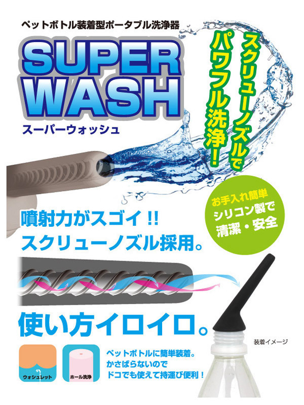 ペットボトル容器に装着!一瞬にしてポータブル洗浄器に変身する、ブラックシリコン製ノズル。容量に関係なくペットボトルの注ぎ口にセットできる、便利な衛生グッズです。水の入った容器を逆さにすれば、自然に圧力がかかり排出!内部の溝加工によって、スクリュー状に噴射します。また、握る強さで水の勢いを調整可能!斜めになった細めのシリコンノズルなので、ヴァギナやアナル、オナホールの洗浄、さらには、手動のウォシュレットとしても重宝することでしょう。※国内メジャーブランドのペットボトルであれば、ほぼ装着可能ですが、稀に装着できない場合もございますのでご注意ください。 |