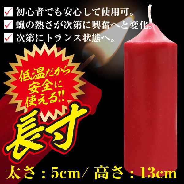 ロウの熱さが次第に興奮へ…!安全かつ本格的なSMプレイを楽しめる「低温ロウソク(長寸)」。●どっしり安定感のある太め蝋燭●高さ13cm、太さ5cmの長寸タイプ●低温でロウが溶ける安心仕様。SM初心者さんでも安心♪ロウを溜めやすく垂らしやすい太めのSM蝋燭!初心者の方から上級者の方まで本格的なムードたっぷりのSMプレイをお楽しみいただけます。緊縛事故防止の教育・啓発を行うNPO法人BDSMセーフティーサポート協会代表の女緊縛師「青山夏樹」推薦!安心・安全に使用できるSMグッズです。【ご使用上の注意】落下させる環境や高さなどにより、体感温度は異なります。火の取り扱いや火災・火傷には十分にご注意下さい。炎を直接肌に触れさせないで下さい。直射日光の当たらない涼しい場所で保管して下さい。 |