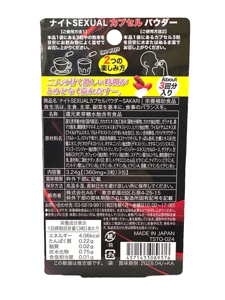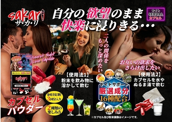 トップページ > エッチコスメ > 男性コスメ > ナイトSEXUALカプセルパウダー sakari(サ・カ・リ)