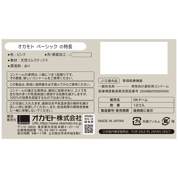 トップページ > コンドーム > スタンダード > オカモトベーシック3P