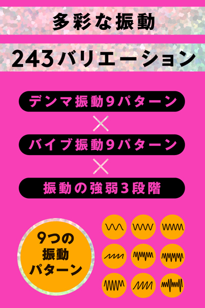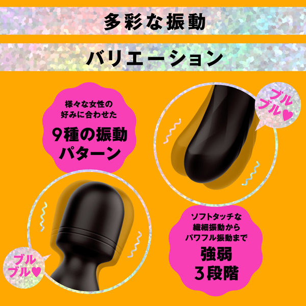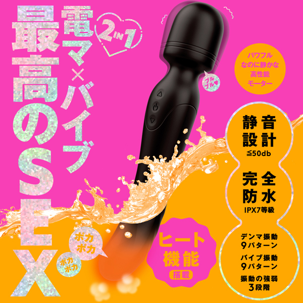 最強の電マ×最強のバイブ!2in1の超万能アイテムで最高のSEX。様々な女性の好みに合わせた9種の振動パターン&強弱3段階はソフトタッチな繊細振動からパワフル振動まで多彩な振動バリエーション!バイブ側にはヒート機能を搭載しています。幸せ温感と高品質ソフトシリコンの感触も相まってリアルな人肌感覚はまさにポカポカあったかホンモノSEX!【完全防水IPX7等級】水での故障を軽減。使用前後にそのまま水洗いもでき衛生面にもこだわっています。パワフルなのに静かな高性能モーターを搭載。周りを気にせずにお楽しみいただけます。 |