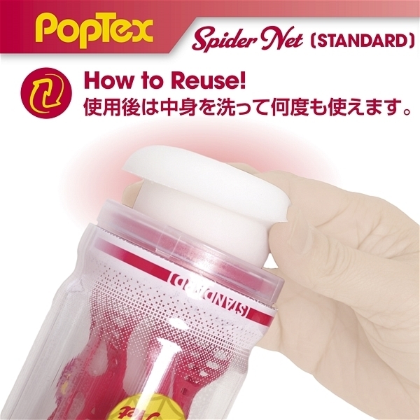 ポップテックススパイダーネットカップスタンダード<リアルな締め付け×ネットヒダ刺激の高機能カップホール>新開発SpiderNetTechnology搭載型カップホール!ホールを包み込む柔軟性に優れたシリコンネットで最も気持ち良い形状に自動的に変形することでスポンジでは再現できない自然なフィット感とリアルな締め付け感を実現しました!内部構造は網目状のネットヒダの中心にアクセントのイボ刺激のアクセント!強力に吸い付く最奥のバキュームスポットは天面の「OneWay」シールを剥がし空気を抜いて挿入することで内部のまとわりつき感をより楽しむことが出来ます。ノーマルタイプのネットと肉厚のホールは抜群のフィット感で飽きのこない快感をあなたにお届けします。使い捨てカップは経済的にも衛生的にもちょっと不安!という方にもおすすめの、本体をはずして洗える「リユースカップ」仕様。ニオイ・ベタつきをカットした使い心地の良いもちもち素材を使用。YELOLABローション付属。 |